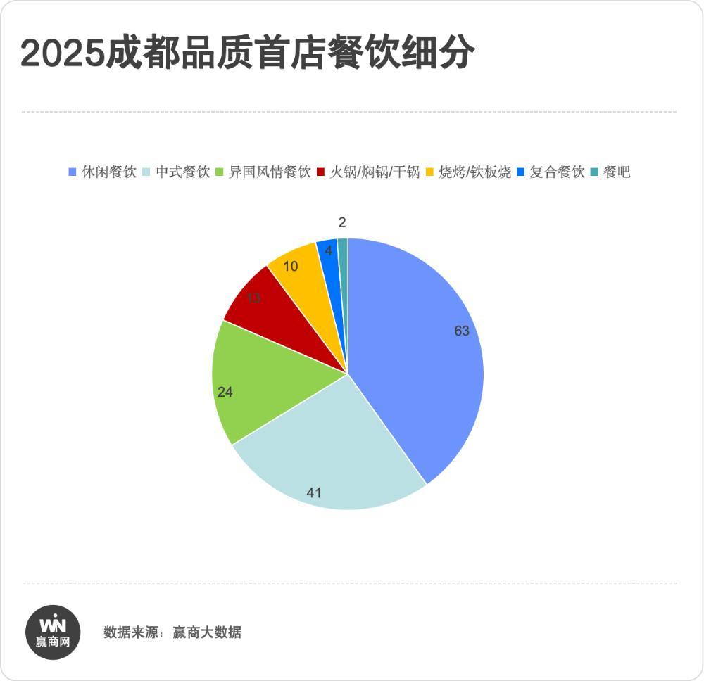 这一发展态势在首店引进结构中也得到充分体现。2025年成都引进餐饮首店157家,其中休闲餐饮以63家(40.1%)占据半壁江山,凸显“轻食化、高频次”的消费趋势。