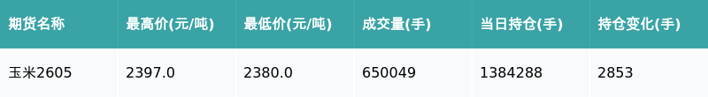 南财智讯3月11日电,盘后期货数据显示,大连商品交易所的玉米主力合约收涨0.5%,收盘报2395.0元/吨,日内资金流入3664.22万元。其他相关指标见下表: