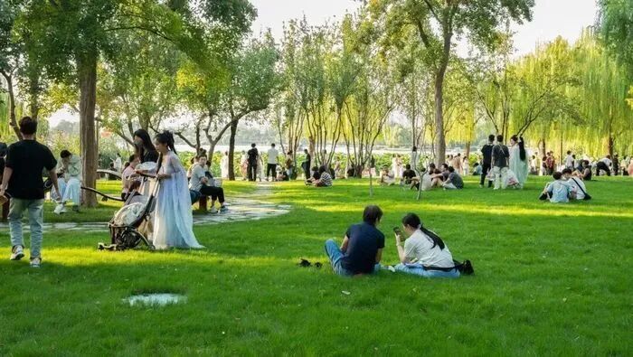 100处共享绿地开启生活的N种可能。“草坪禁止踩踏”的传统管理思维被彻底打破,“精野结合”的养护模式让绿地真正成为生活空间的延伸。周末午后,一家人铺开野餐垫,孩子在草地上追逐嬉戏;傍晚时分,年轻人在草地上弹起吉他,一场即兴的草地音乐会就此开启。在这里,绿色不再是仅供观赏的风景,而是可以躺下来、玩起来的生活方式。